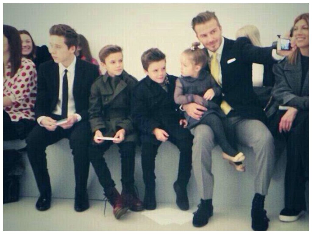Дэвид Бекхем с детьми на модном показе Виктории